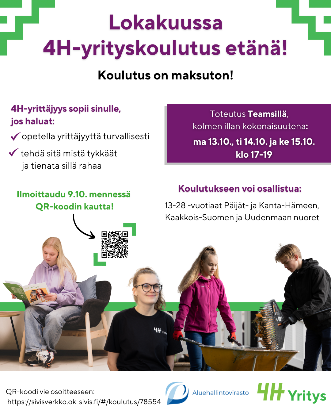 Lokakuun 4H-yrityskoulutuksen ilmoittautuminen on auki! 🤩