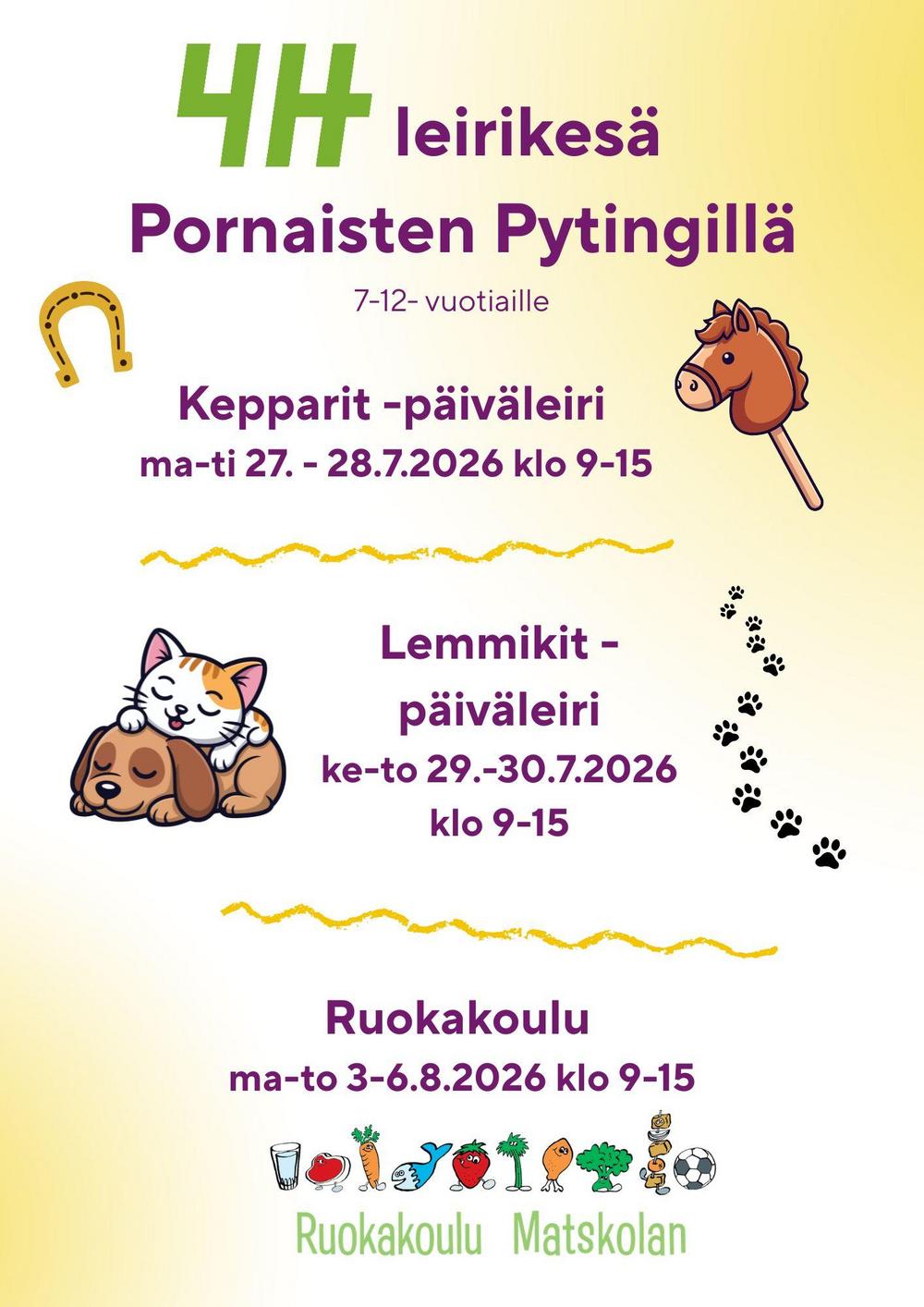 Päiväleirit on suunnattu 7-12-vuotiaille.
